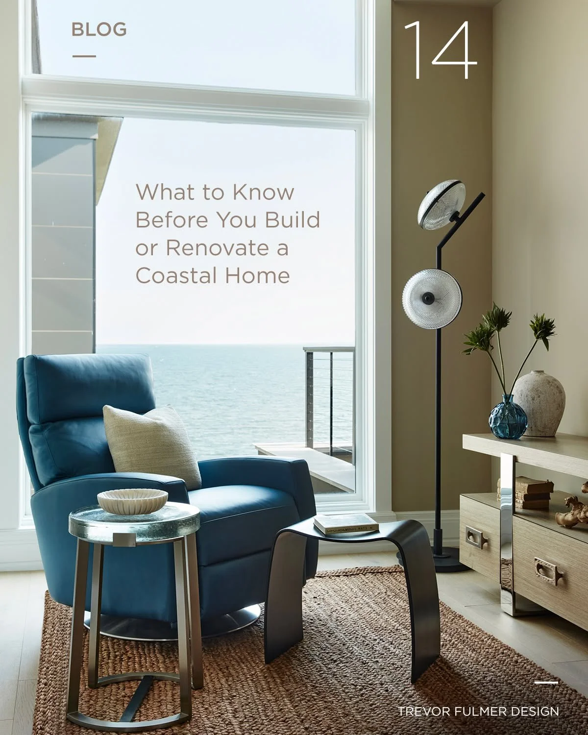 Natural textures and coastal interior design finishes, such as seagrass and woven furniture, beautifully complement contemporary lighting and sculptural décor. Expansive windows invite abundant natural light, balancing the black and earth-tone color palette. Thoughtfully selected textural patterns, metallic finishes, curated artwork, and vintage pieces enhance this coastal contemporary interior design, resulting in a home that feels both elevated and inviting, perfect for beachside living.